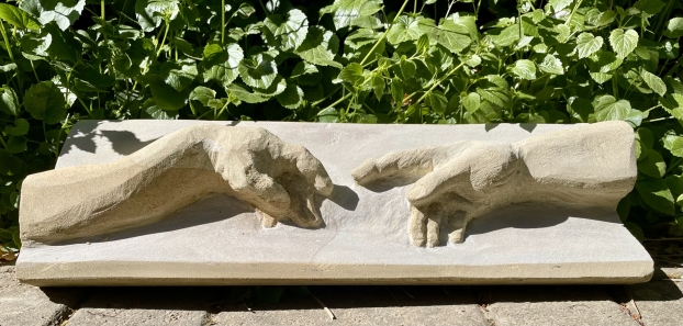 I work mainly with various limestones. My pieces are generally OK for indoors or outdoors and most are 50 cm or less: stone is heavy! But I can do much larger commissions on-site.